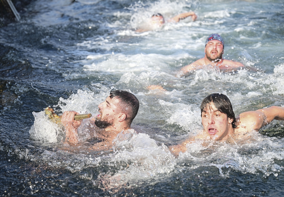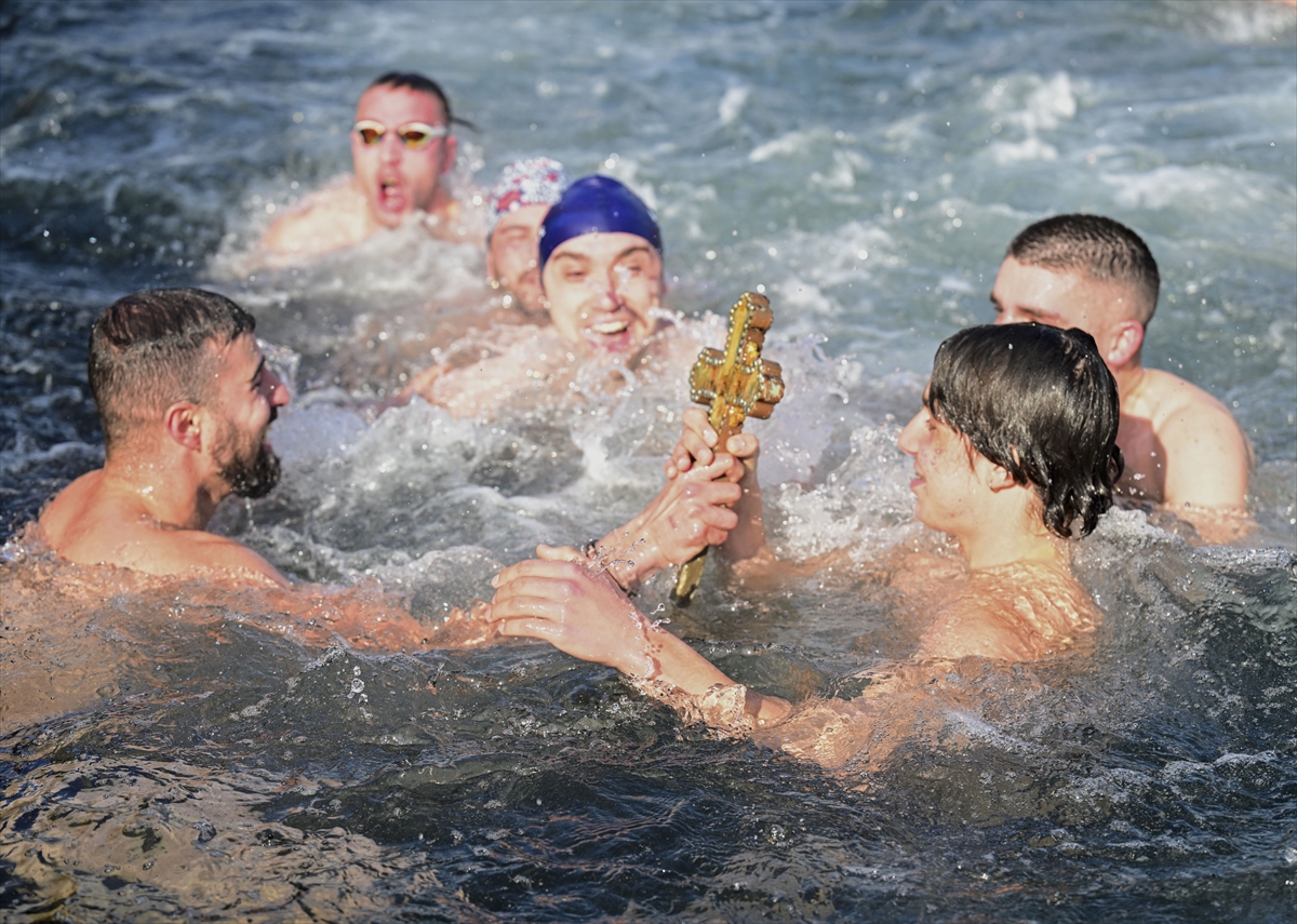 Patrik Bartholomeos, duanın ardından haçı suya attı. Haçı denizden çıkarmak için platformda duran çok sayıda kişi Haliç'in soğuk sularına atladı.