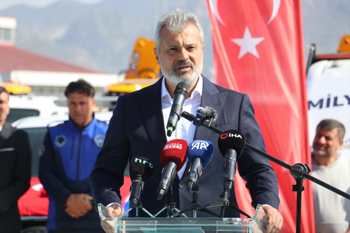 HATAY (AA) – Hatay Büyükşehir Belediyesi tarafından çeşitli hizmetlerde kullanılmak üzere satın alınan otobüs, kamyon, kamyonet, pikap, temizlik ve iş makinelerinden oluşan 1000 aracın tanıtımı yapıldı.