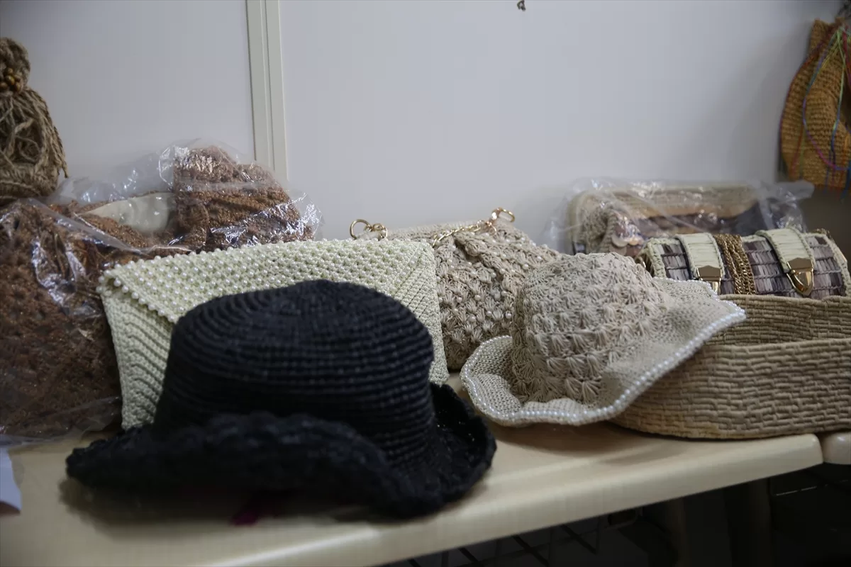 Depremde elinden ve ayağından yaralandığını ve platin takıldığını anlatan Kalın, "Tedavi gördükten sonra buraya geldim. Nakışla, boncukla, el işleri yaparak sağ elimi kullanmaya başladım. Elimde ve ayağımda platin var. Şu an nakışla dikişle uğraşıyorum. Çanta yapıyorum." diye konuştu.