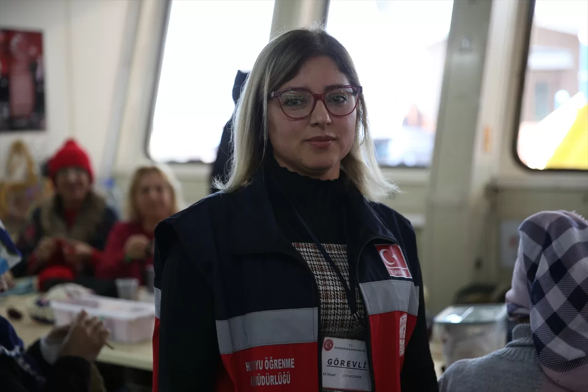 Halk Eğitim Merkezi usta öğreticisi Elif Kocaman da 6 Şubat'tan sonra ilk olarak gönüllü daha sonra kurs açarak gemideki depremzedelere yönelik etkinlikler yaptıklarını kaydetti.