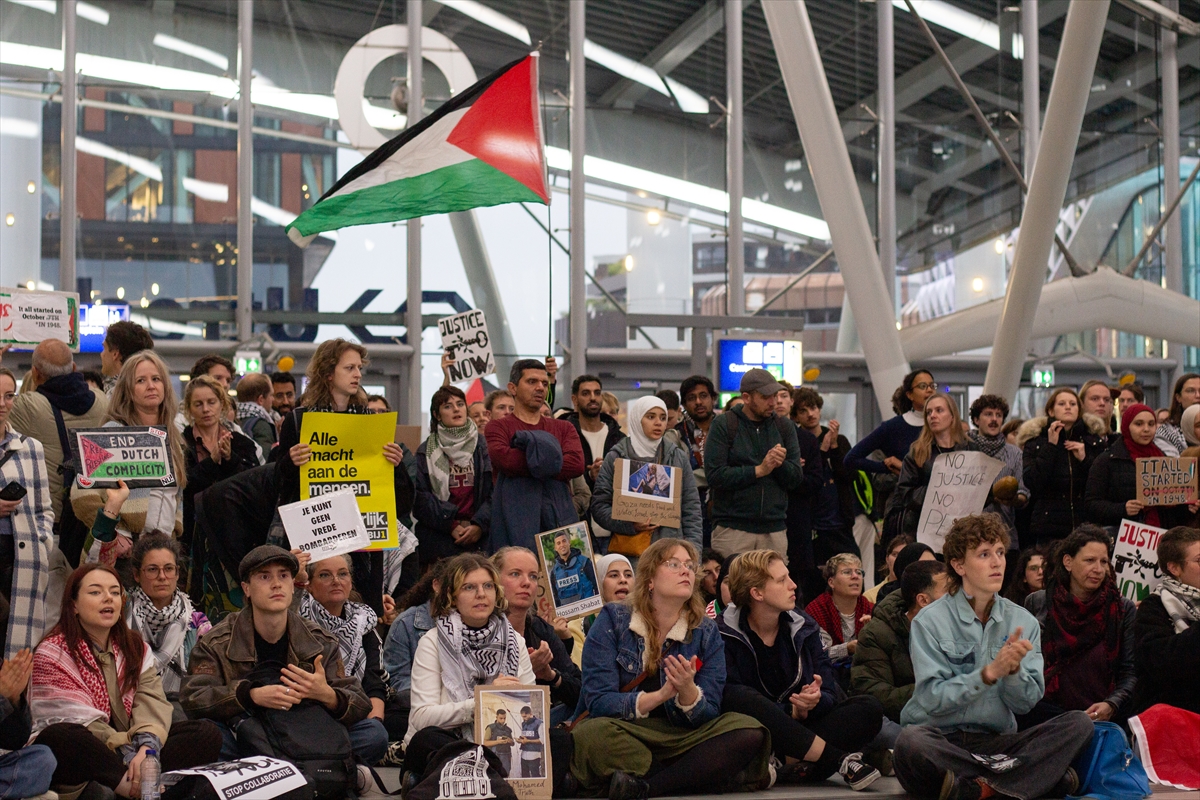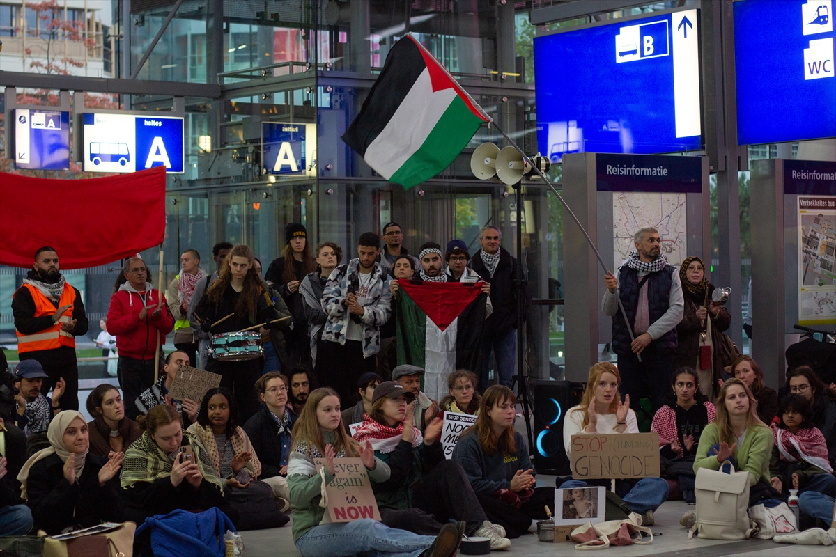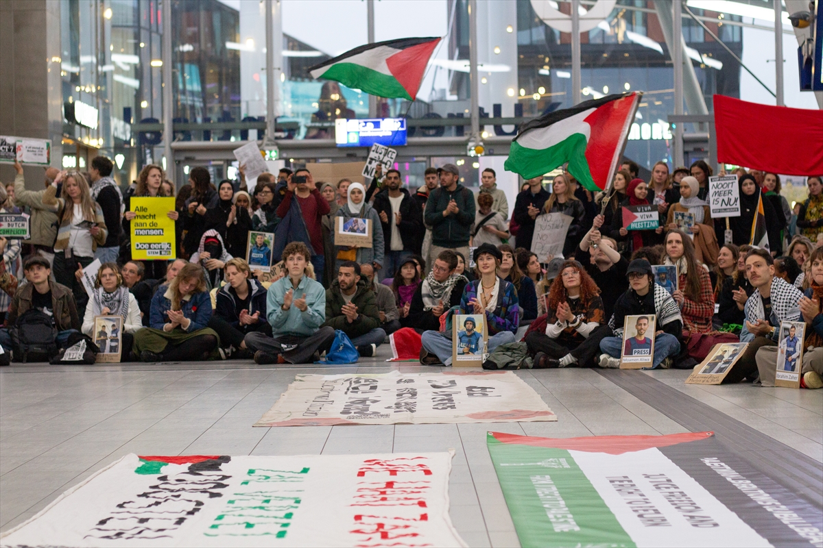 UTRECHT (AA) – Hollanda'da Utrecht, Amsterdam ve Rotterdam başta olmak üzere farklı kentlerdeki toplam 20 tren istasyonunda, Filistin'e destek için oturma eylemleri düzenlendi.