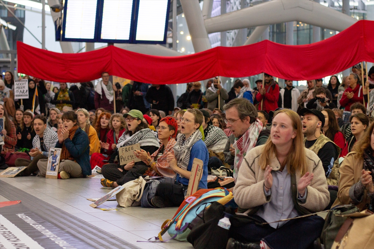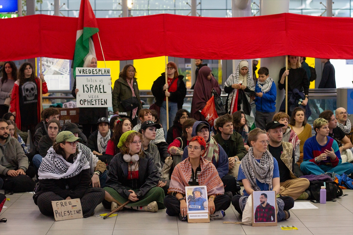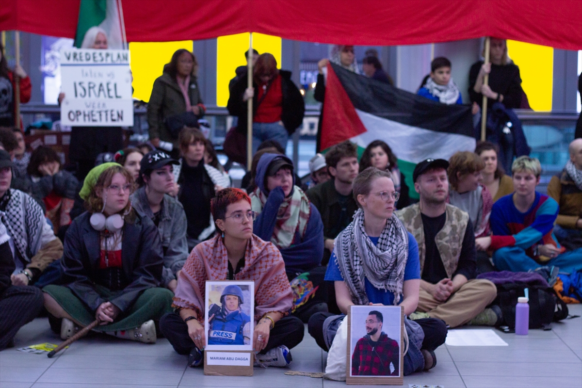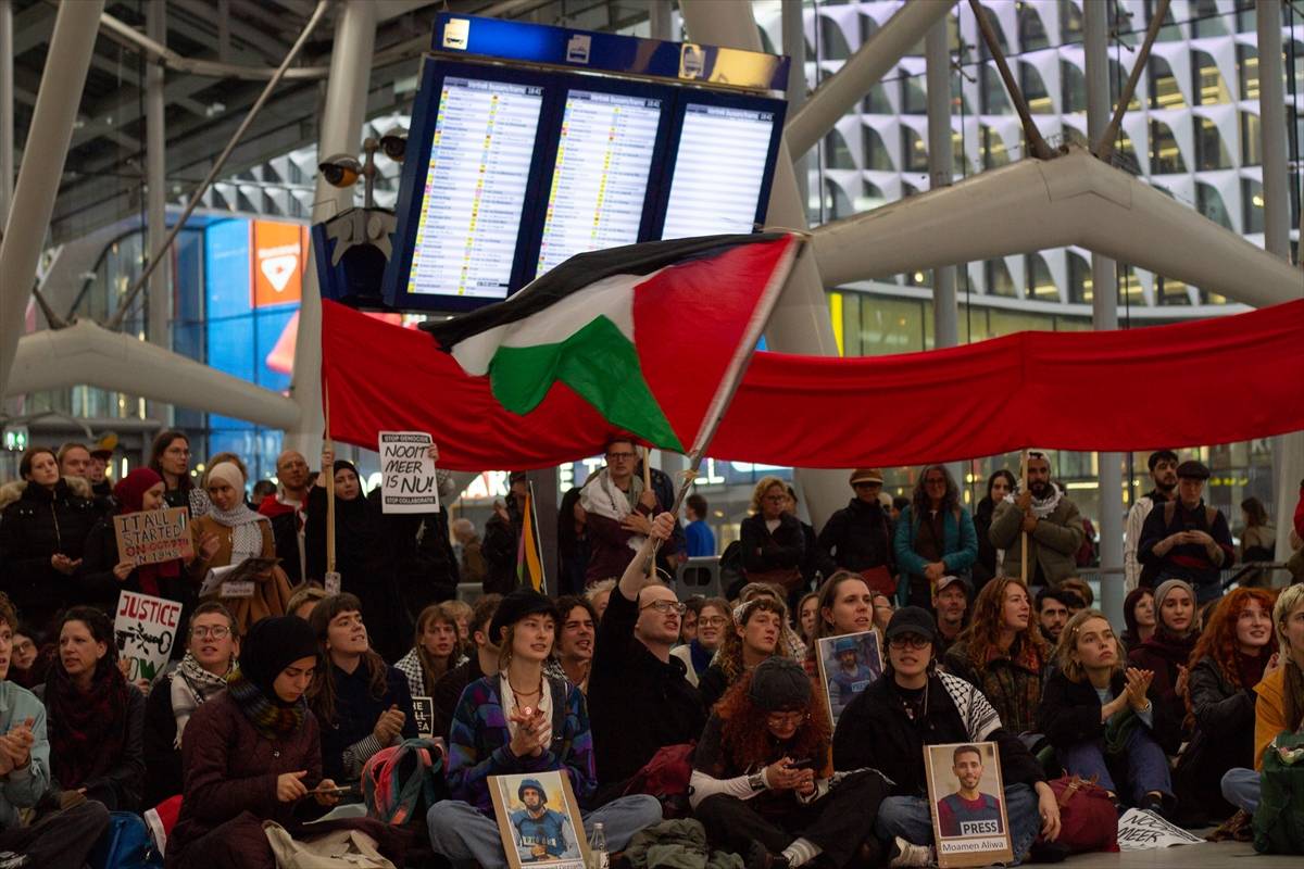 UTRECHT (AA) – Hollanda'da Utrecht, Amsterdam ve Rotterdam başta olmak üzere farklı kentlerdeki toplam 20 tren istasyonunda, Filistin'e destek için oturma eylemleri düzenlendi.
