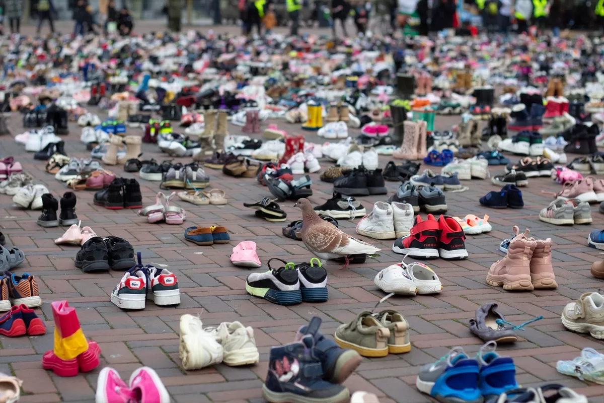 Bir Zeytin Ağacı Dik Vakfı tarafından Rotterdam'daki Binnenrotte Meydanı'nda organize edilen etkinlikte, Gazze'de İsrail'in saldırılarında hayatını kaybeden binlerce çocuk anıldı.