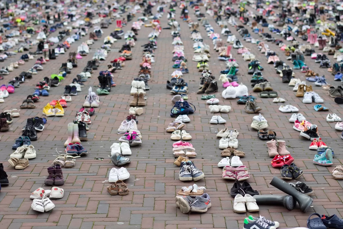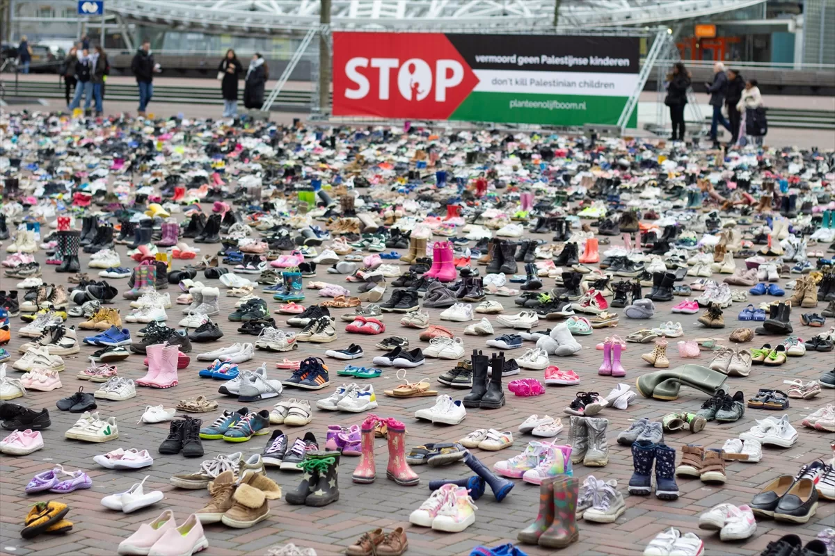 İsrail'in saldırılarında öldürülen çocuklara dikkati çekmek amacıyla meydana yaklaşık 8 bin çift çocuk ayakkabısı bırakıldı.
