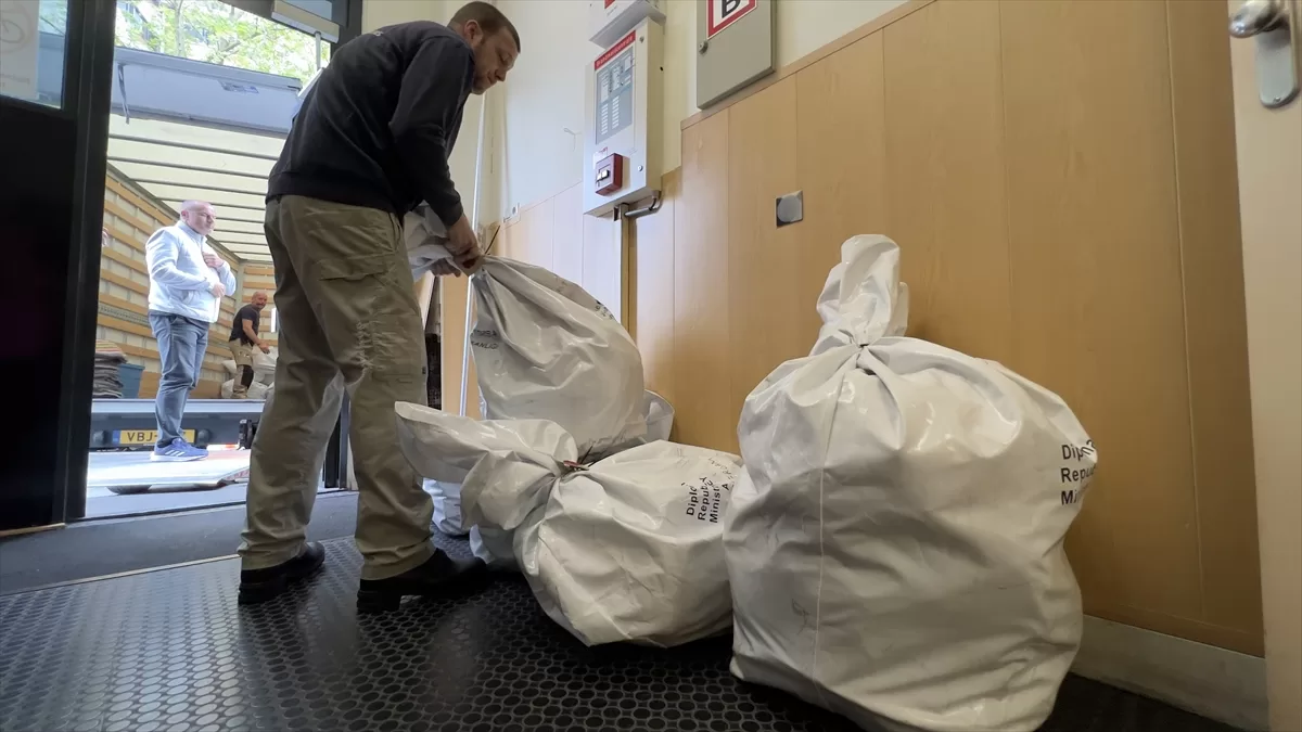 Rotterdam, Amsterdam ve Deventer seçim bölgelerinde, 20-24 Mayıs'ta kullanılan oyların bulunduğu pusulalar, beyaz diplomatik torbalar içinde konsolosluklardan alınarak sandık saklama komisyonu ve siyasi parti temsilcilerinin nezaretinde kargo araçlarına konuldu.