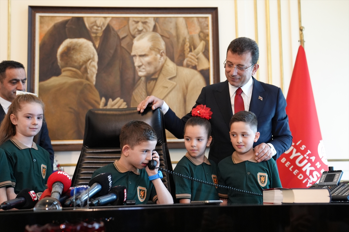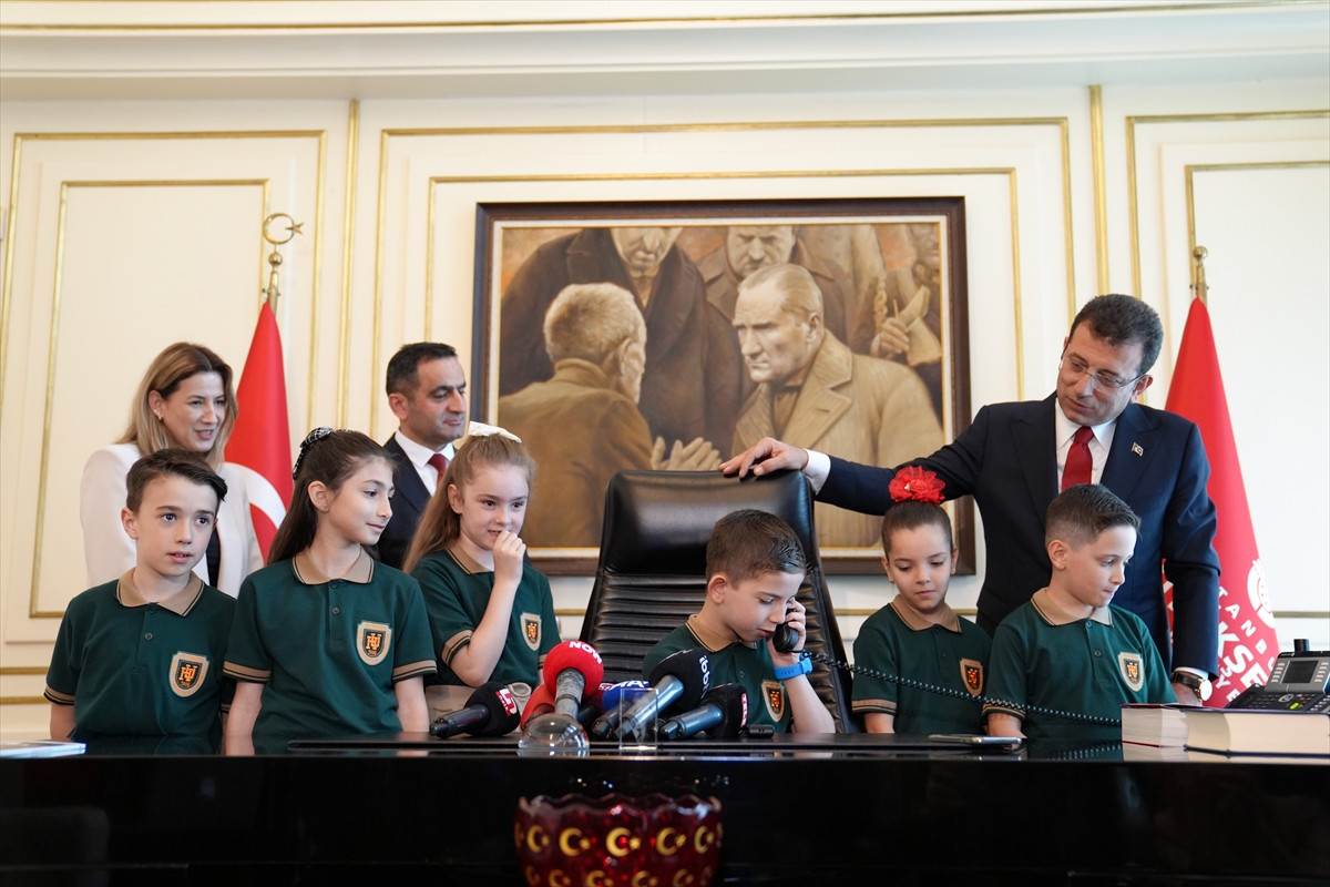 İSTANBUL (AA) – İstanbul Büyükşehir Belediye (İBB) Başkanı Ekrem İmamoğlu, 23 Nisan Ulusal Egemenlik ve Çocuk Bayramı dolayısıyla makam koltuğunu temsili olarak Zeytinburnu Haluk Ündeğer İlkokulu 3. sınıf öğrencisi Ali Selim Metli'ye devretti.