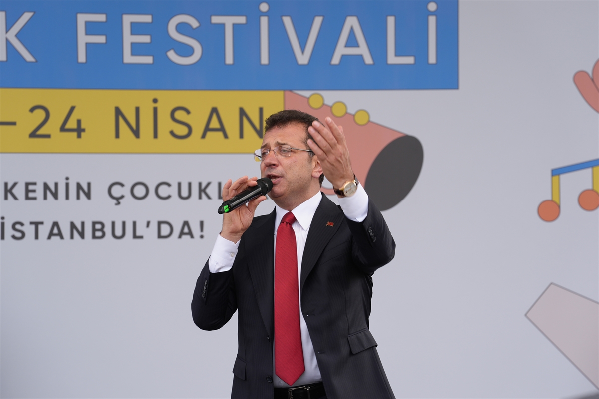 Vatandaşlarla selamlaşan ve fotoğraf çektiren İmamoğlu, yaptığı konuşmada, 23 Nisan'da çocuklarla bir arada olmak ve eğlencelerine eşlik etmek için festivalde olduğunu söyledi.