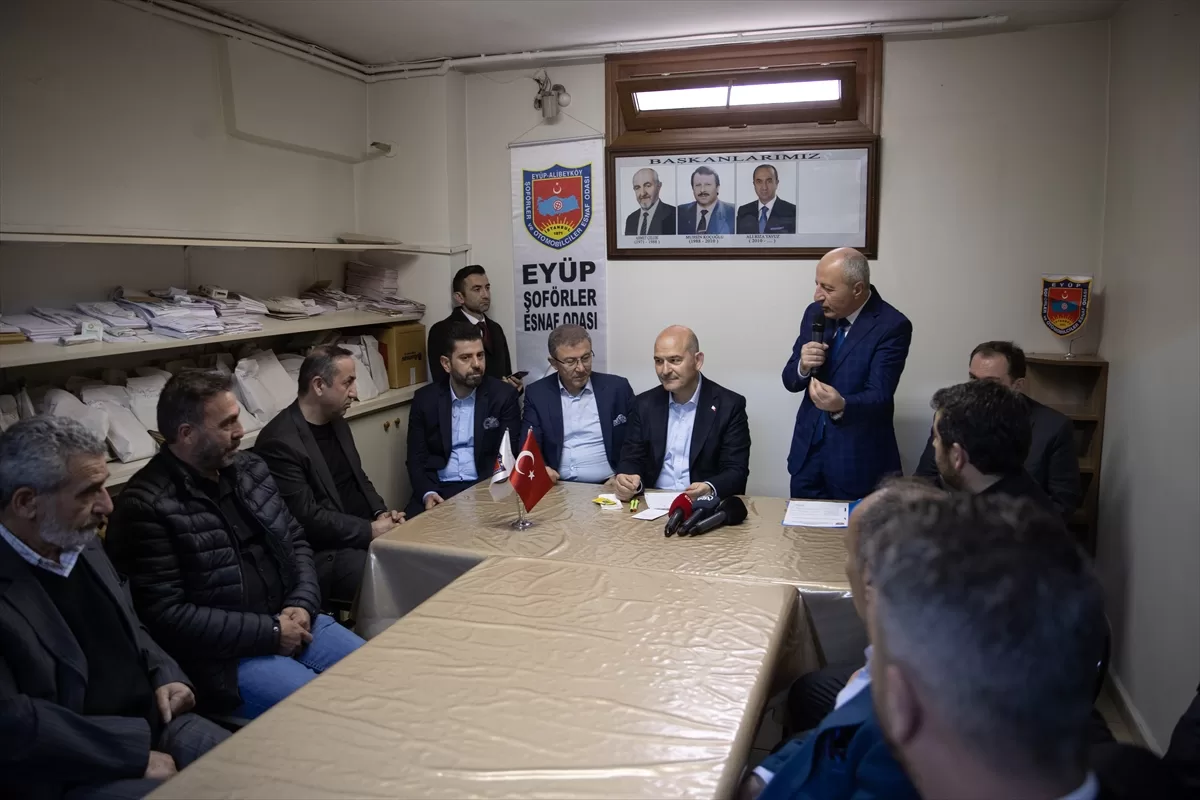 İstanbul 2. Bölge'den AK Parti milletvekili adayı olan Soylu, esnaf odasında şoförlerle bir araya geldi.