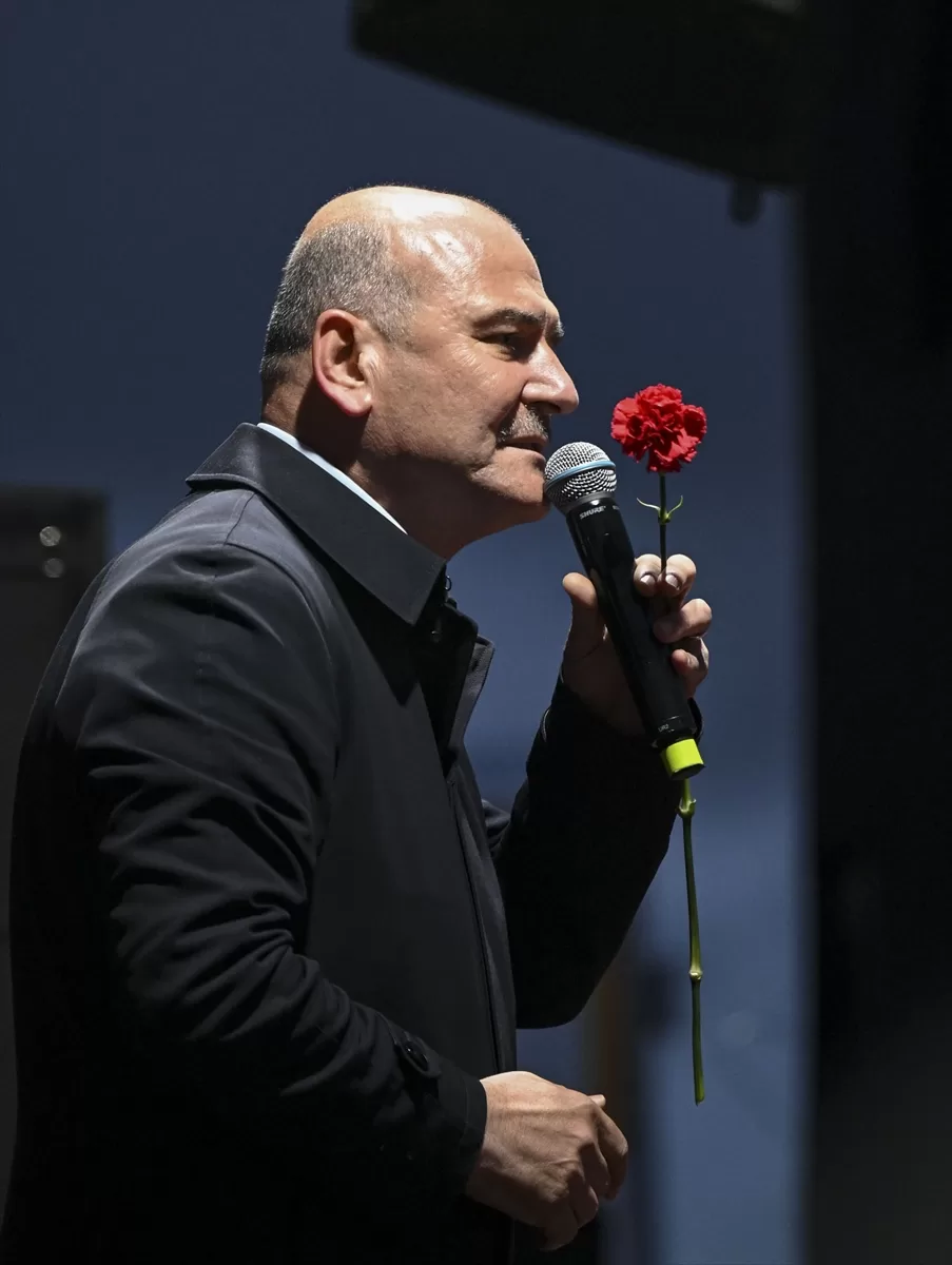Cumhurbaşkanı Recep Tayyip Erdoğan'ın 7 Mayıs'ta İstanbul Atatürk Havalimanı'nda Türk siyasi hayatının ve dünyanın en büyük mitinglerinden birisini gerçekleştirdiğini kaydeden Soylu, "14 Mayıs'ta yetkiyi bu millet bize verecek. Suriye'nin ve Irak'ın kuzeyinde bir tek terör yuvası bırakmayacağız, inlerine gireceğiz Allah'ın izniyle. Ülkemizi Amerika'nın oyunlarıyla yıllardır, tam 40 yıldır bu ülkeyi kan gölüne çevirenlere bundan sonra müsaade etmeyeceğiz. Türkiye eski Türkiye değil. Şu tablo, Türkiye'nin eski Türkiye olmadığını net bir şekilde gösteriyor. 21 yıldır Tayyip Erdoğan'a sahip çıkıyorsunuz. 21 yıldır bu ülkeyi başkalarına ezdirmediniz." diye konuştu.