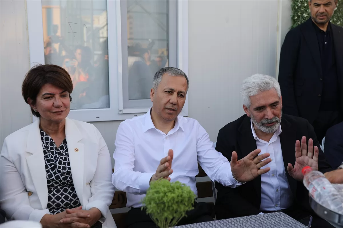 Yerlikaya, depremzedelerle çay içerek, taleplerini dinledi.