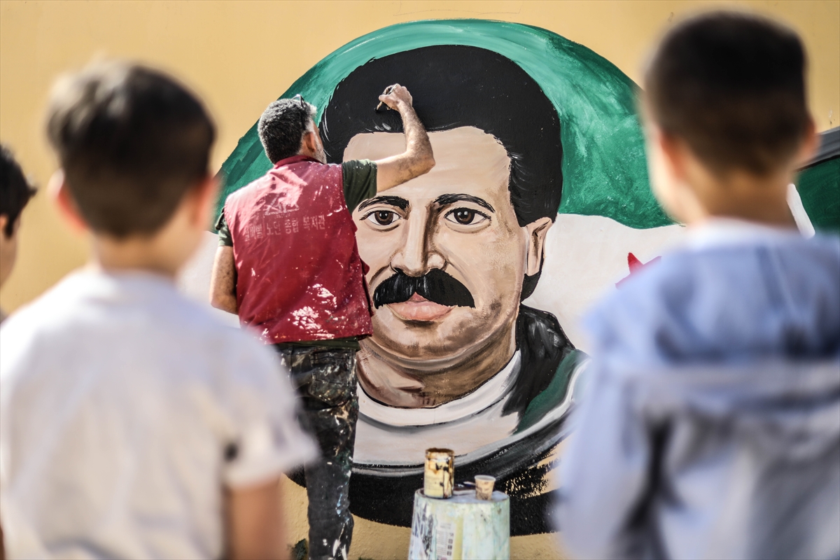 İDLİB (AA) – Suriye'nin kuzeybatısındaki İdlib'de grafiti sanatçısı Aziz Esmer ve bir grup ressam arkadaşı, iki gün önce hayatını kaybeden Suriyeli kozmonot Muhammed Faris'in anısına okul duvarına resim çizdi.