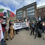 Burada toplananlara seslenen Camden Filistin Dayanışma Kampanyası Eş Başkanı Sabby Sagall, Starmer'ın soykırım işbirlikçisi olduğunu belirterek, "Bugün 31 bin sivil, İsrail'in sözde savunma kuvvetleri tarafından öldürüldü. Binlerce kişi Gazze'nin yok edilen şehirlerinin enkazı altında. Bu bir savaş suçudur." diye konuştu.