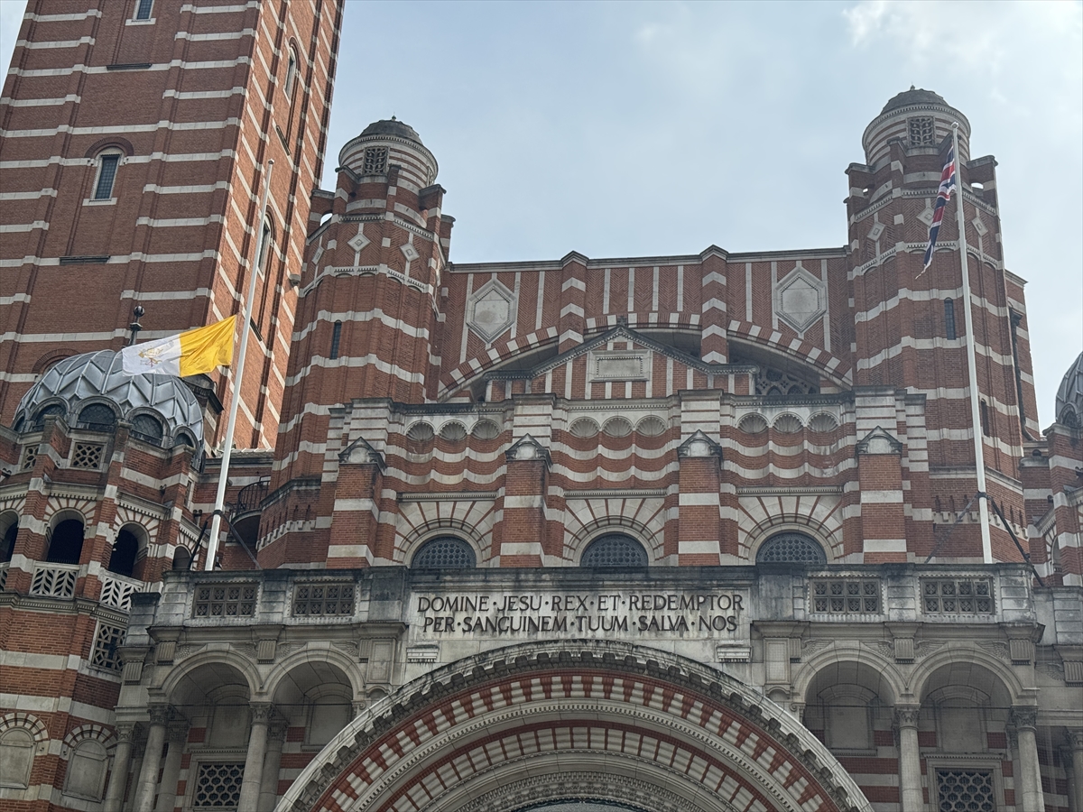Westminster Katedrali dışında asılı Vatikan bayrağı yarıya indirildi.