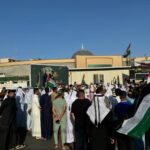 Irak ve Filistin bayraklarını ellerinde taşıyan göstericiler, attıkları solganlarla İsrail ve İsrail ordusunu lanetledi.