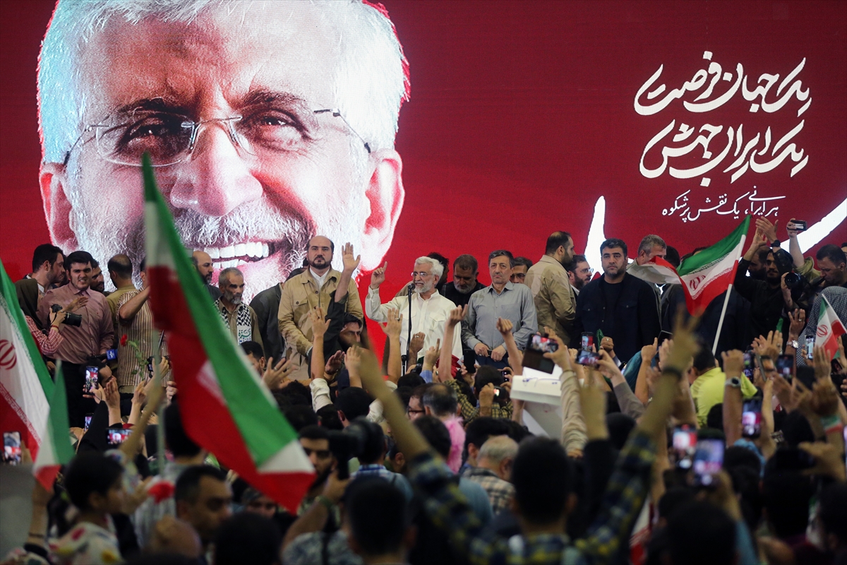 İlk turdaki muhafazakar aday Meclis Başkanı Muhammed Bakır Kalibaf'ın seçim merkezinin lideri Ali Nikzad ile İran lideri Ayetullah Ali Hamaney'in kontrolündeki kamu iktisadi teşebbüsü İmam Humeyni Fermanı İcra Kurulu Başkanı Perviz Fettah'ın da katıldığı mitingde konuşan Celili, "Bugün İran'ın dünyadaki etkisinin artmasını istediğiniz için bu yola çıktım." diye konuştu.