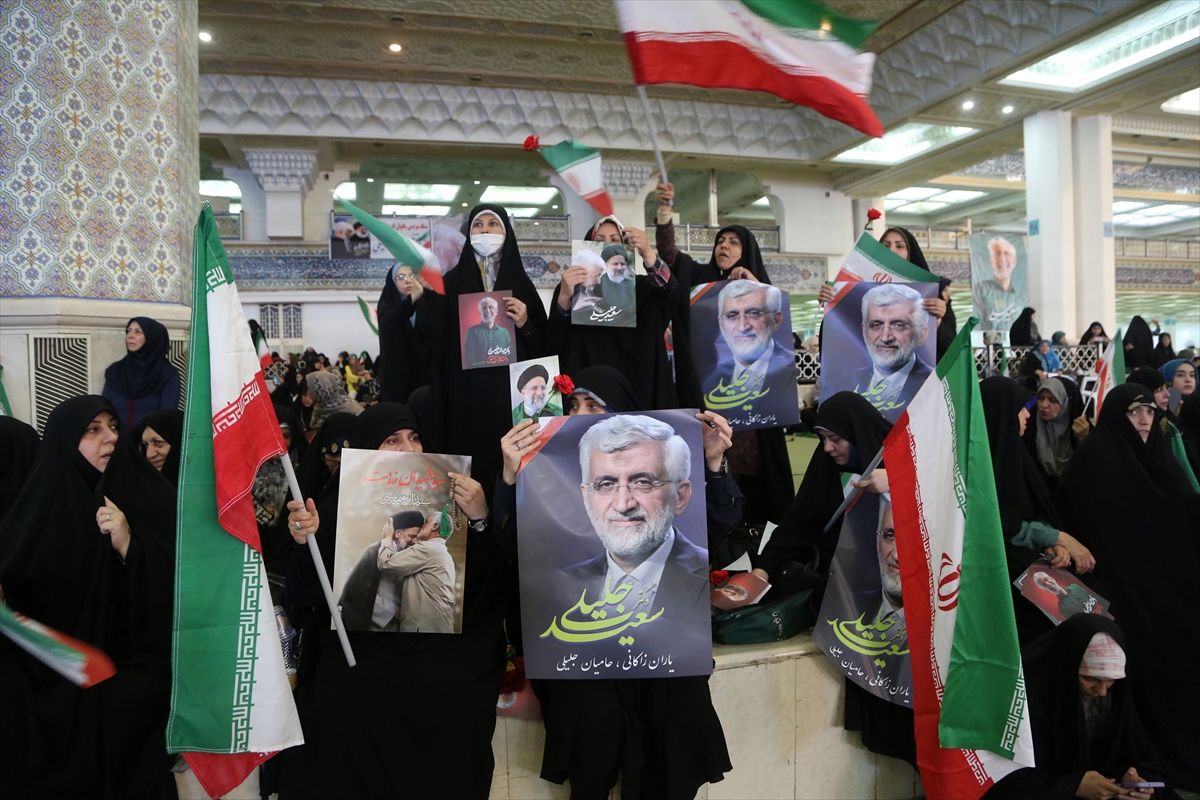 Muhafazakar Celili'nin mitinginde ise 19 Mayıs'ta helikopter kazasında hayatını kaybeden Cumhurbaşkanı İbrahim Reisi'nin ailesinin Celili'ye destek mektubu okundu.
