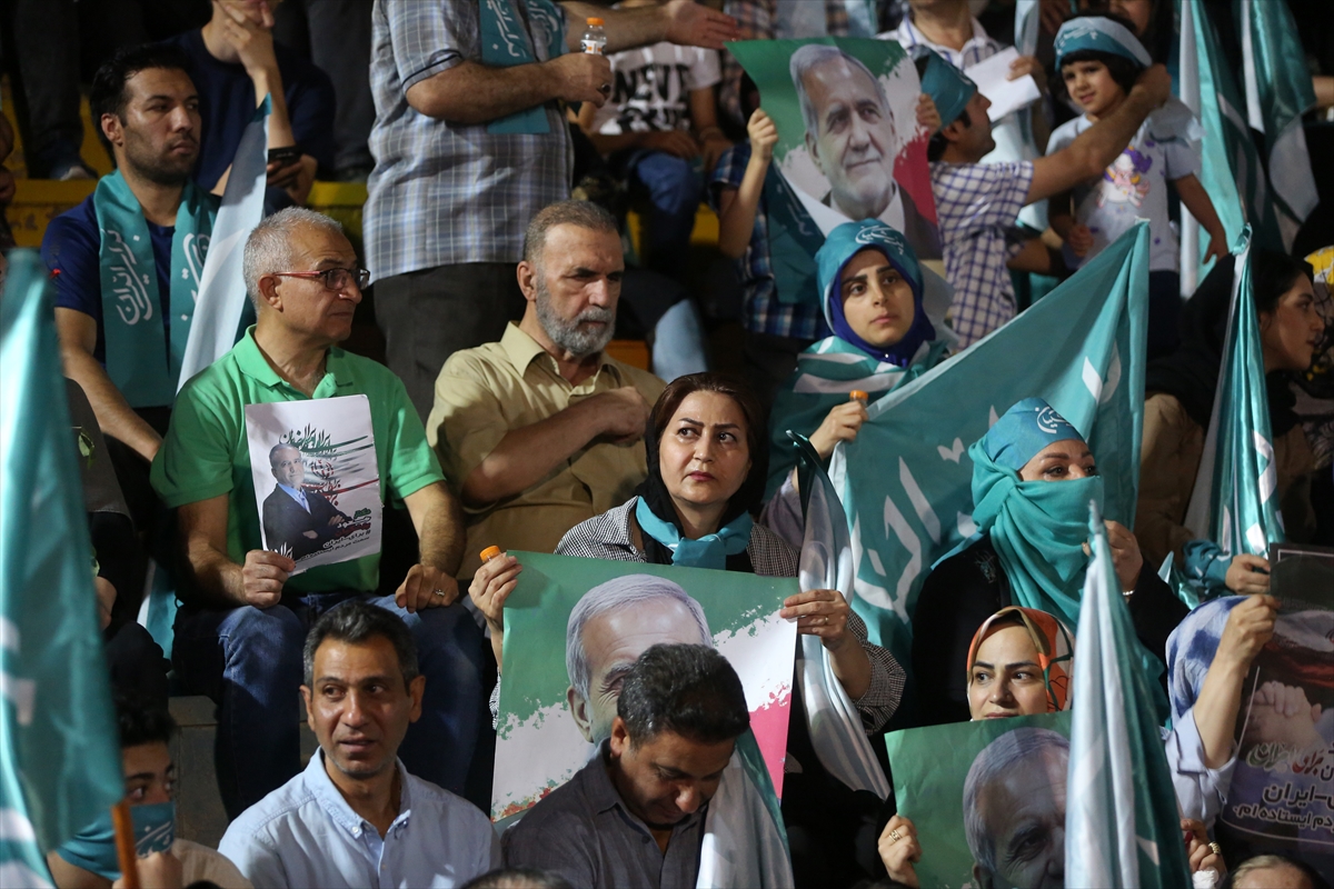 Reformist aday Pezeşkiyan, mitingini Tahran'daki Şehid Haydarniya Stadyumu'nda, muhafazakar aday Celili ise İmam Humeyni Büyük Musalla Camisi'nde binlerce kişinin katılımıyla gerçekleştirdi.