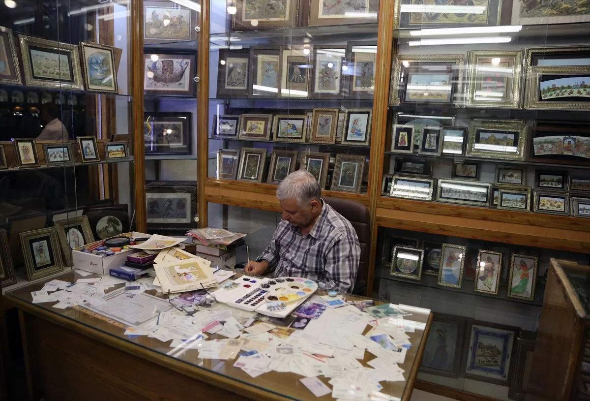 Minyatür ustası Murtaza Mesaili, Nakş-i Cihan Meydanı’ndaki mağazasında AA muhabirine mesleğine ilişkin açıklamalarda bulundu.