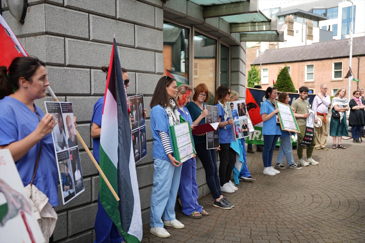 DUBLİN (AA) – İrlanda'nın başkenti Dublin'de sağlık çalışanları Filistin'e destek gösterisi düzenledi.