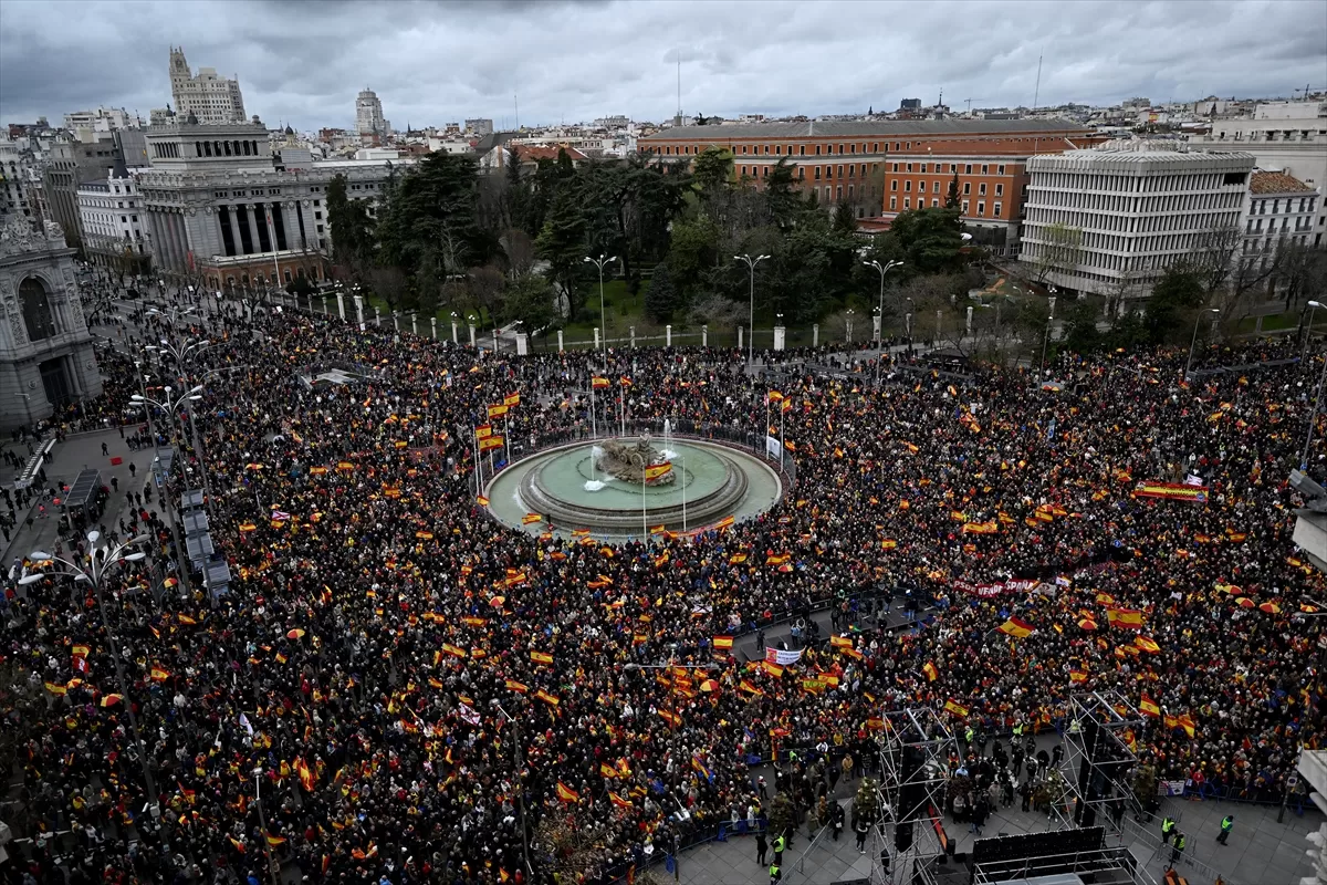Madrid'in Kibele Meydanı'nda (Cibeles) organize edilen eyleme katılan ve ellerinde İspanya bayrağı olan kalabalık, Başbakan Pedro Sanchez'i hedef alarak "Sanchez istifa" ve "Benim adıma değil. Ne af ne de kendi geleceğine karar verme hakkı" sloganları attı.