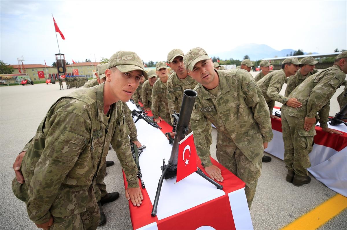 Eğitimlerini tamamlayan 169 asker, silaha ve Türk bayrağına el basarak yemin etti.