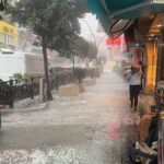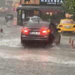 Yaklaşık yarım saat süren dolu ve sağanak, cadde ve sokaklarda taşkınlara neden oldu.
