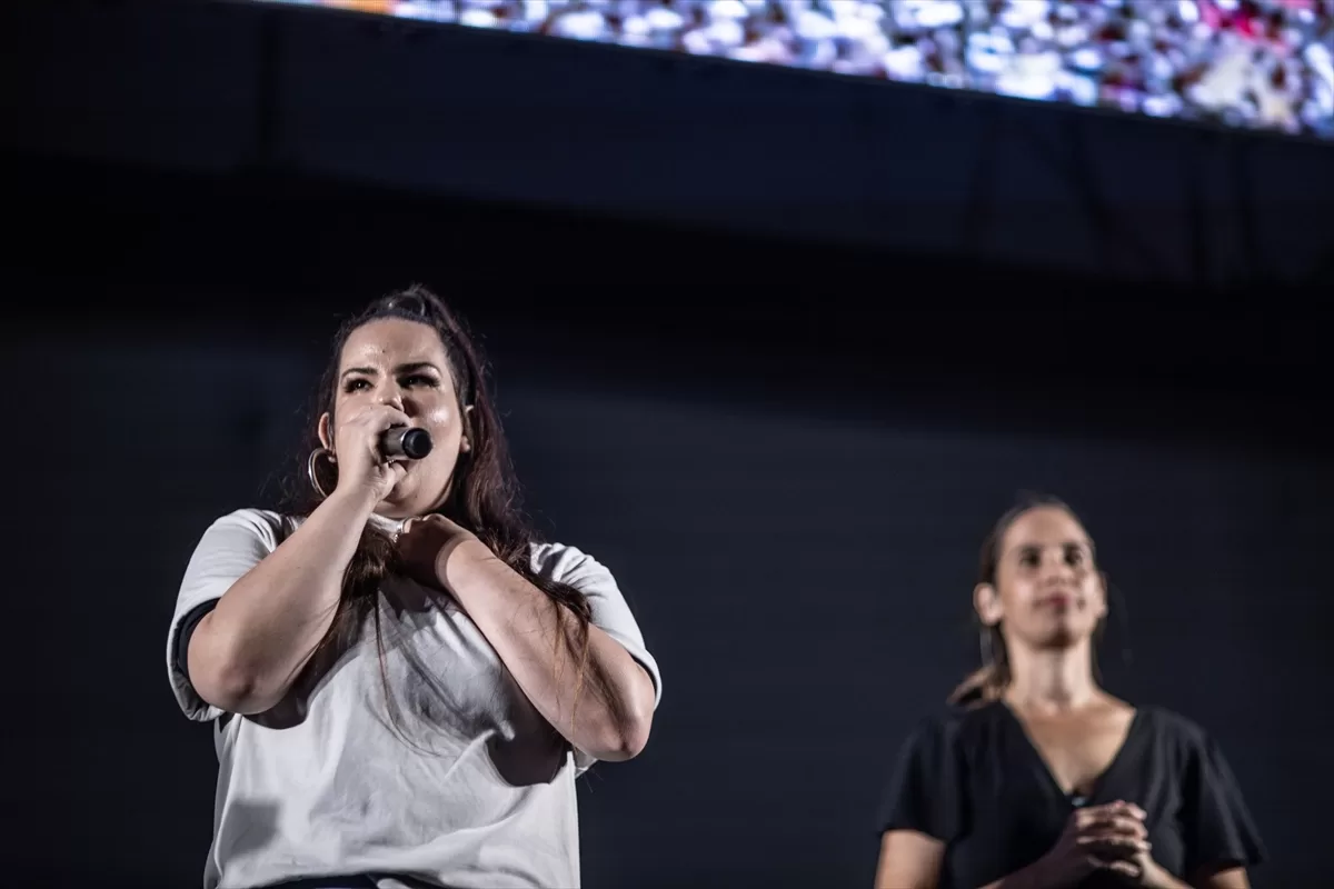 Gösteride İsrailli şarkıcı Netta Barzilai, İsrail milli marşını seslendirdi.