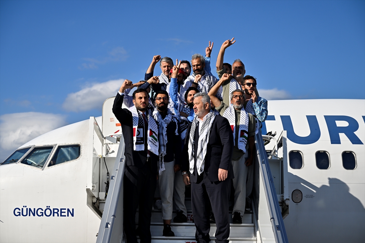İSTANBUL (AA) – İsrail tarafından uluslararası sularda saldırıya uğrayıp alıkonulan Küresel Sumud Filosu'nda yer alan aktivistleri getiren Türk Hava Yolları (THY) uçağı İstanbul Havalimanı'na indi.