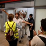 Eski Barselona Belediye Başkanı Ada Colau, Katalonya Cumhuriyetçi Solu (ERC) partisinin Barselona Belediyesindeki meclis üyesi Jordi Coronas ve Compromis partisinden Valensiya özerk yönetim parlamentosu üyesi Juan Bordera'nın da aralarında olduğu 21 İspanyol'u, Madrid'deki Adolfo Suarez Barajas Havalimanı'nda kalabalık bir grup karşıladı.