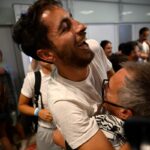 Havalimanı terminalinde "Özgür Filistin", "Katil Netanyahu", "İşgalci İsrail" sloganları atan kalabalık, İspanya'ya dönen filo üyelerine sarılarak destek verdi.