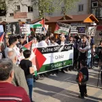 Demokrasi Parkı'nda toplanan İmam Hatip Lisesi öğrencileri, Filistin ve Türk bayraklarıyla İsrail aleyhine slogan attı.