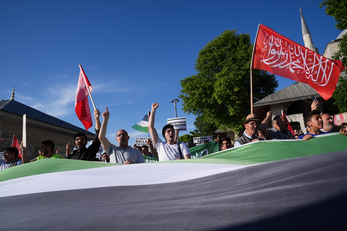 Katılımcılar tekbirler getirip "Nehirden denize özgür Filistin", "Filistin'e özgürlük, direnişle gelecek", "Hamas'a selam, direnişe devam" ve "Katil İsrail, Filistin'den defol" sloganları atarak Üsküdar Meydanı'na geldi.