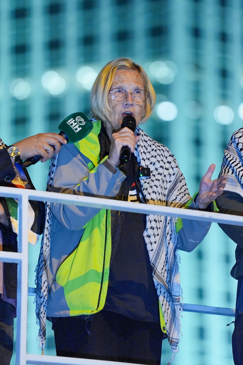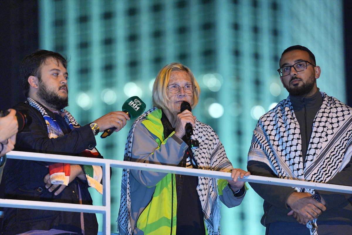 Özgürlük Filosu Koalisyonu'nun (Freedom Flotilla Coalition-FFC) Amerikalı üyesi, emekli albay ve eski diplomat Mary Ann Wright da tüm İstanbul halkına burada oldukları için teşekkür etti.