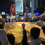 İnsan Hak ve Hürriyetleri (İHH) İnsani Yardım Vakfının çağrısı üzerine Levent'teki İsrail'in İstanbul Başkonsolosluğu önünde toplanan vatandaşlar, ellerinde Türk ve Filistin bayrakları taşıyarak, İsrail'in Gazze'ye yönelik saldırılarını ve Uluslararası Özgürlük Filosu'nu yasa dışı şekilde ele geçirmesine tepki gösterdi.