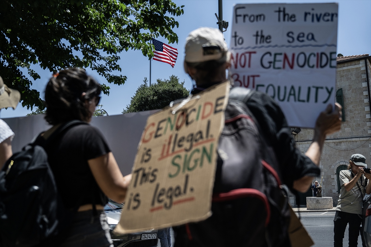KUDÜS (AA) – Bir grup Yahudi aktivist, ABD-İsrail güdümlü Gazze İnsani Yardım Vakfı'nın (GHF) faaliyetlerine karşı Batı Kudüs'teki ABD Konsolosluğu önünde gösteri düzenledi.