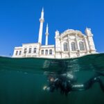 Görüntülerde, İstanbul'un kültürel mirası arasında yer alan Boğaz kenarındaki Dolmabahçe Sarayı ve Ortaköy'deki Büyük Mecidiye Camisi gibi yapıların mavi sulara yansıması yer alıyor.