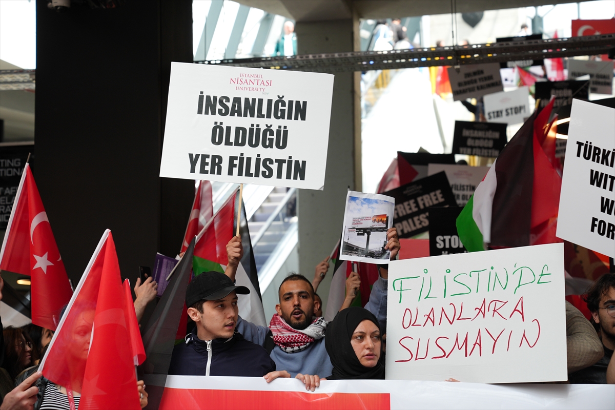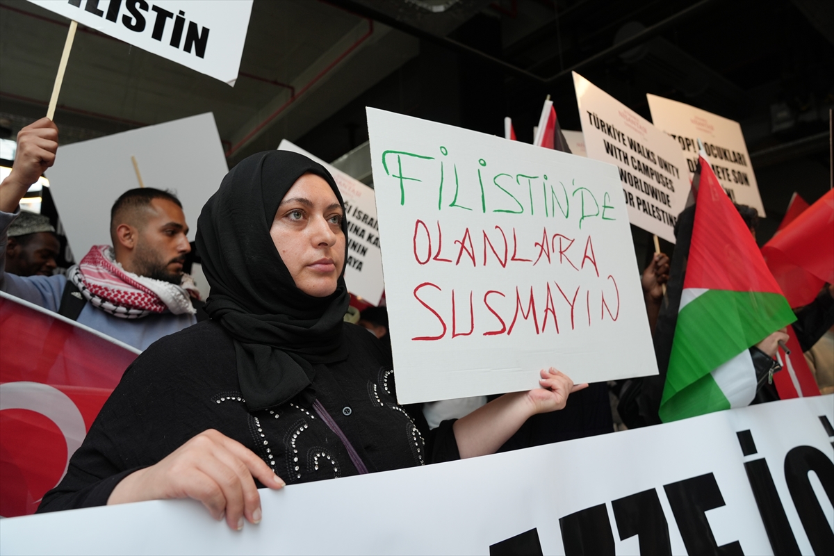 İSTANBUL (AA) – İstanbul Nişantaşı Üniversitesi öğrencileri, Filistin'e destek eylemi yaptı.