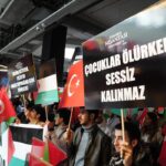 Protestoda, öğrenciler, "Katil İsrail Filistin'den defol", "Çocuklar ölürken susmayacağız", "Filistin halkı yalnız değildir" ve "Netanyahu hesap ver bugün kaç çocuk öldürdün" gibi Türkçe ve İngilizce sloganlar attı.
