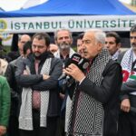 Rektör Prof. Dr. Osman Bülent Zülfikar ile akademisyenlerin en önde yer aldığı kalabalık, hep bir ağızdan tekbir getirerek ve "Gazze'ye Özgürlük" sloganları atarak Tarihi İÜ Beyazıt Seraskerlik Kapısı önüne kadar yürüdü.