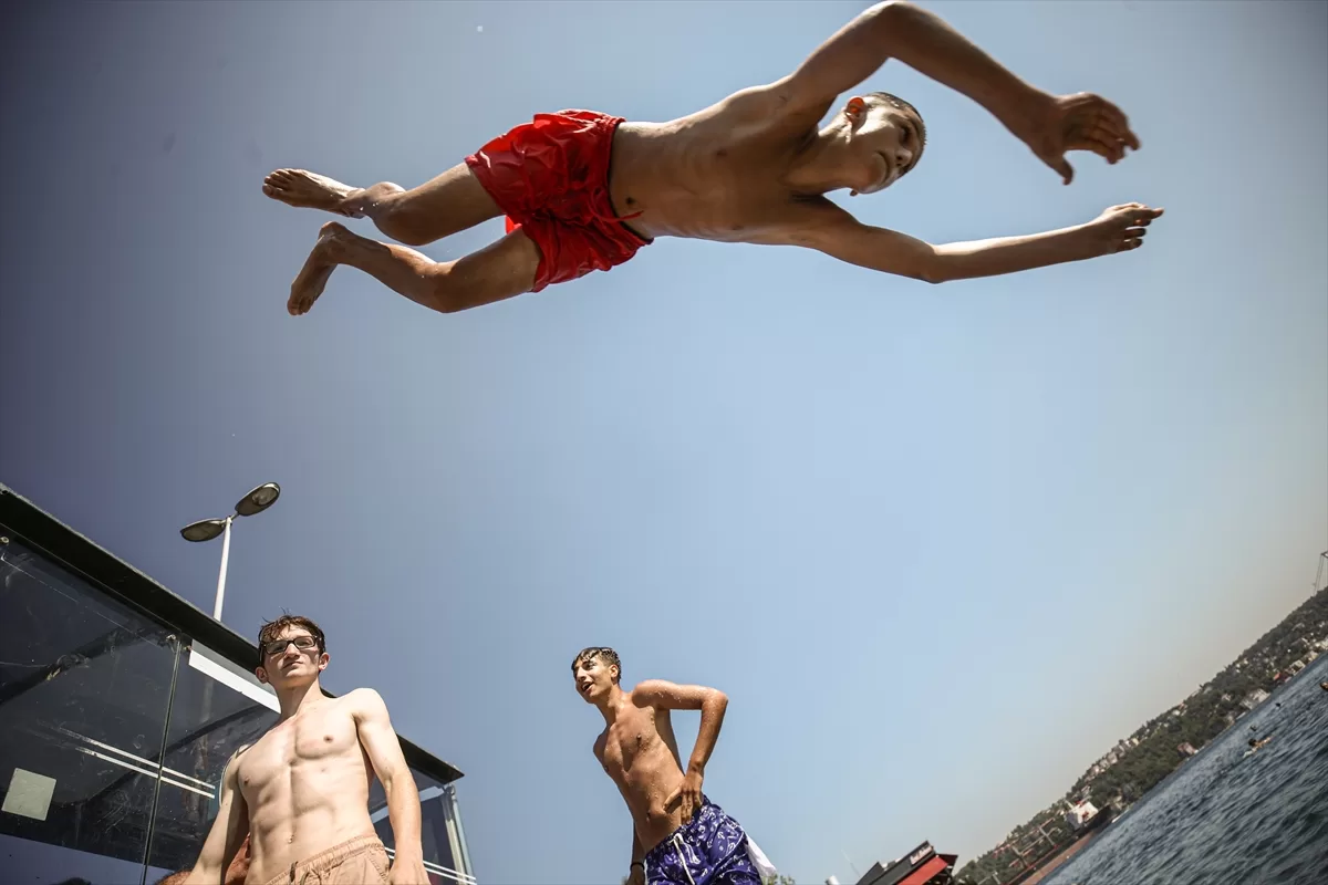 İSTANBUL (AA) – Megakentte hafta sonu da etkisini sürdüren "eyyam-ı bahur" sıcaklarından bunalan İstanbullular, denizde veya gölgelik alanlarda serinlemeye çalışıyor.