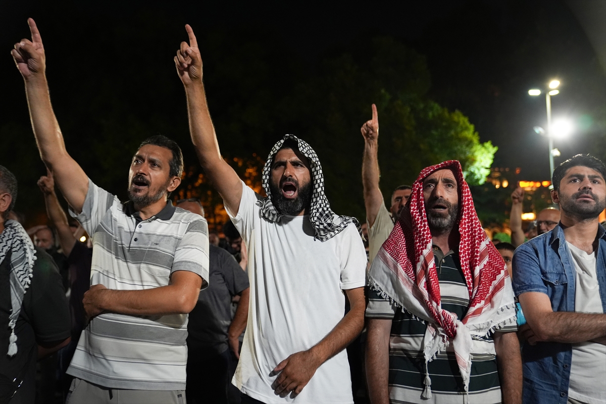 İsrail aleyhine slogan atan katılımcılar, yatsı namazının ardından Filistinliler için Kunut duasını okudu.
