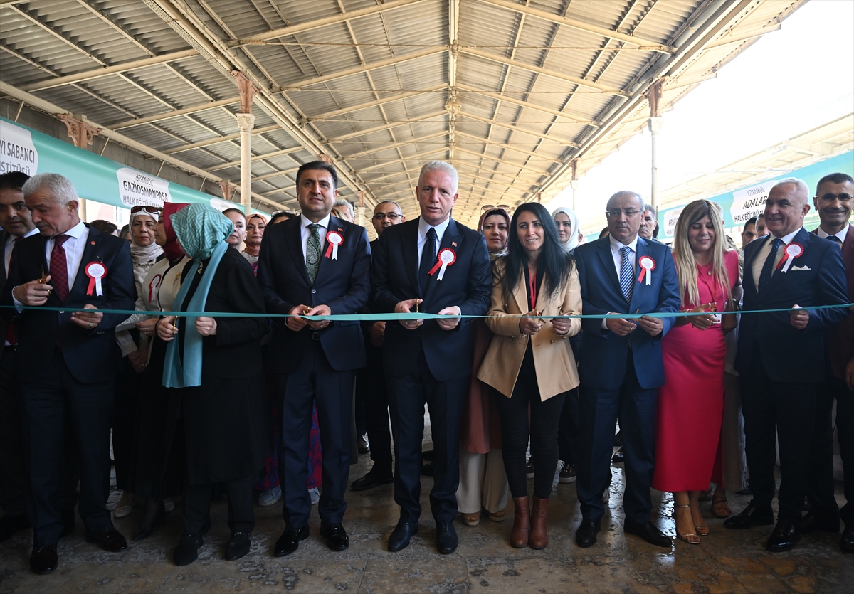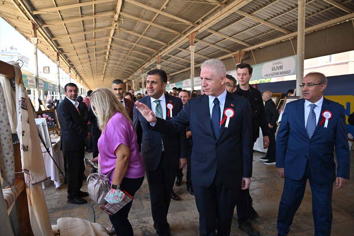 Ayrıca kursiyerlerin ilçe halk eğitim merkezlerinde yaptığı el işi ürünlerin yer aldığı sergi açıldı.