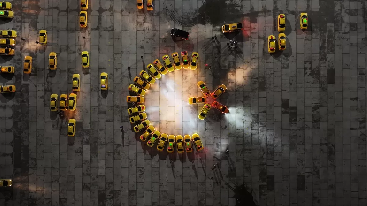 Açıklamanın ardından taksi şoförleri, araçlarıyla ay yıldız şekli yaptı.