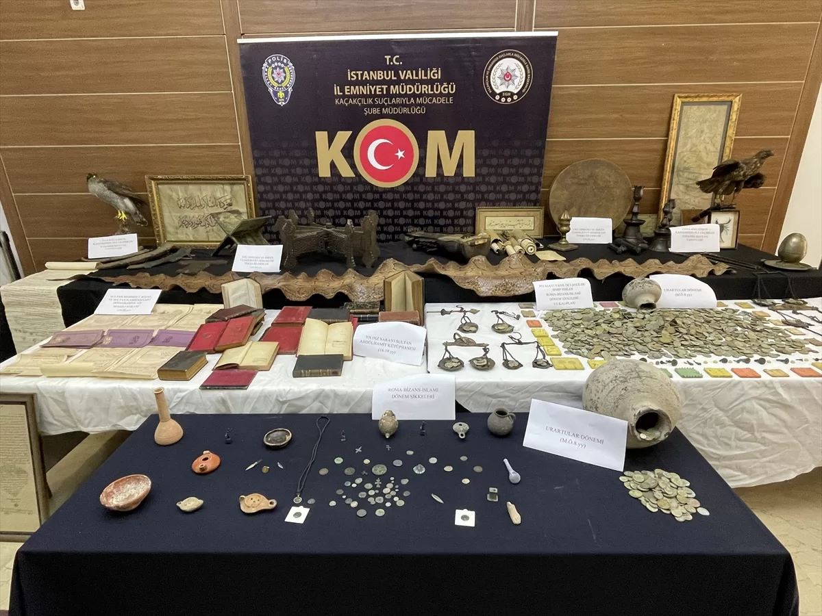 İSTANBUL (AA) – İstanbul'da düzenlenen 5 ayrı tarihi eser operasyonunda 11 şüpheli yakalanırken adreslerde yapılan aramalarda çeşitli dönemlere ait çok sayıda obje bulundu.