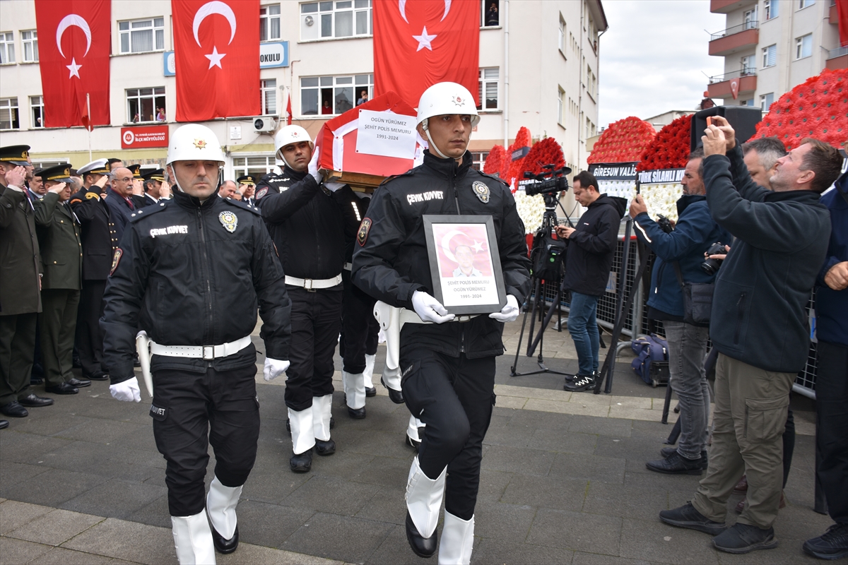 Öğle namazının ardından kılınan cenaze namazı sonrası şehit polis memuru Ogün Yürümez'in naaşı, Eynesil ilçesine bağlı Aralık köyündeki aile kabristanlığında toprağa verildi.