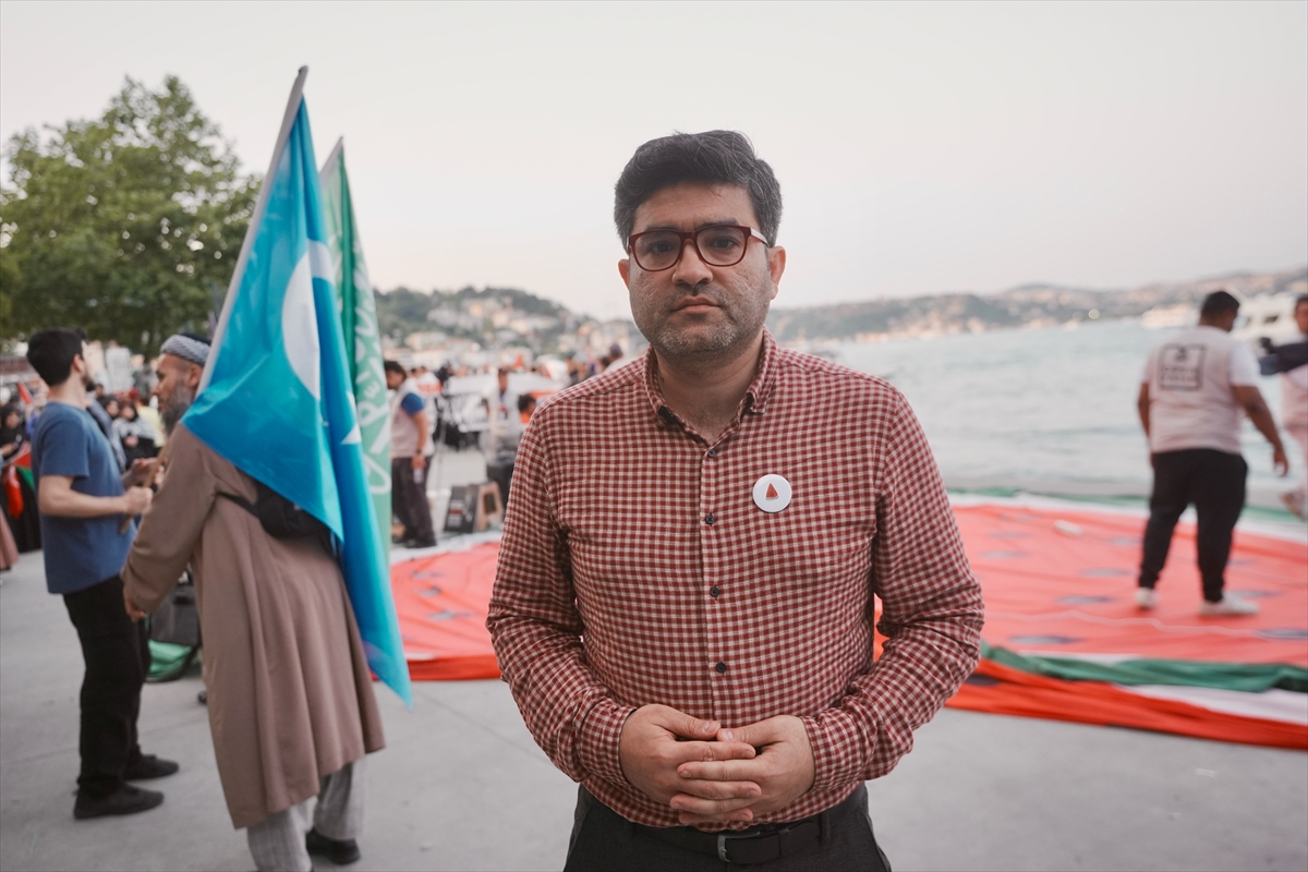 March to Gaza Türkiye Başkanı Dr. Hüseyin Durmaz da Kahire'deki Türkiye Büyükelçiliği'nden program alanına online olarak bağlanarak, şunları söyledi:
