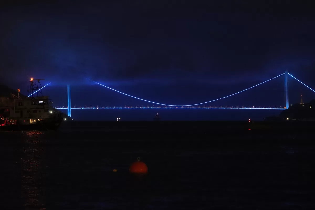 Önemli günlerde renk ve ışık gösterileriyle aydınlatılan köprüler, bu kez denizciliğin önemine dikkati çekmek için maviye büründü.