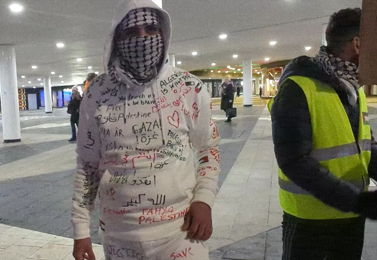 Ülkedeki çok sayıda sivil toplum kuruluşunun çağrısıyla soğuk havaya rağmen Segels Torg Meydanı'nda toplanan göstericiler, İsrail tarafından öldürülen gazetecilerin fotoğraflarından oluşan bir sergi açtı.