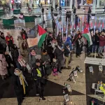Öte yandan eylemciler, "Özgür Filistin", "İşgale son" şeklinde slogan attı.