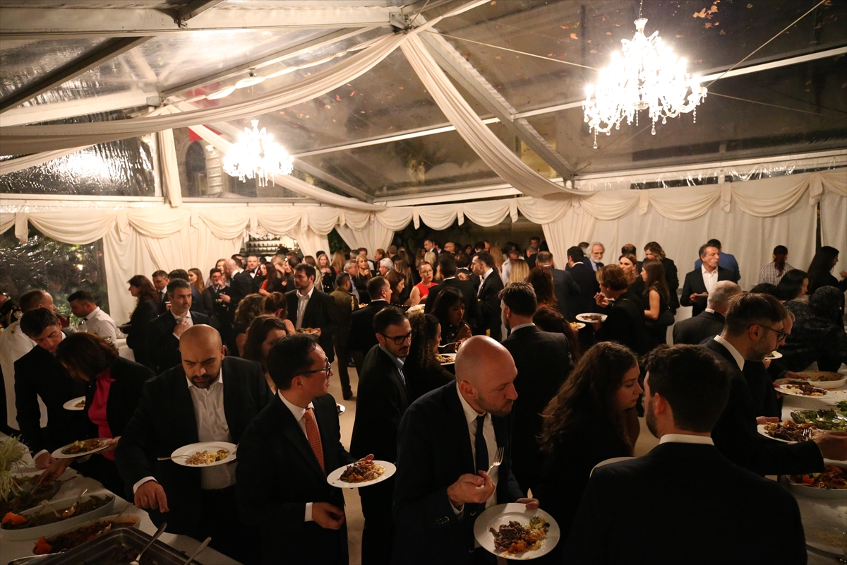 Büyükelçilik konutunda düzenlenen resepsiyonda ev sahibi Türkiye'nin Roma Büyükelçisi Ömer Gücük, Büyükelçilik Müsteşarı Ayça Sarıtekin, Silahlı Kuvvetler Hava Ataşesi Yarbay Mustafa Can Engür ve eşi Nergis Karaman Engür, konukları tek tek kapıda karşıladı.